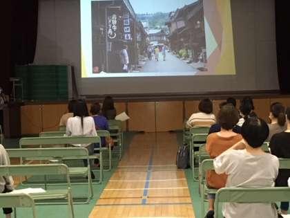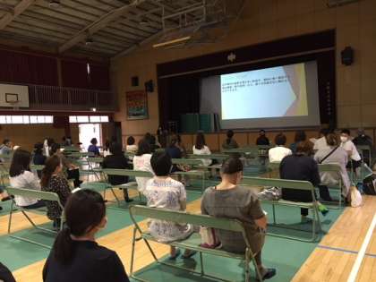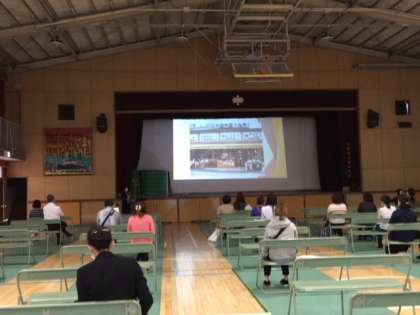 進路説明会が終わった後、3年の保護者に残っていただき、修学旅行の説明会が行われました。トール先生から、行き先の画像などを交えて説明が行われました。
