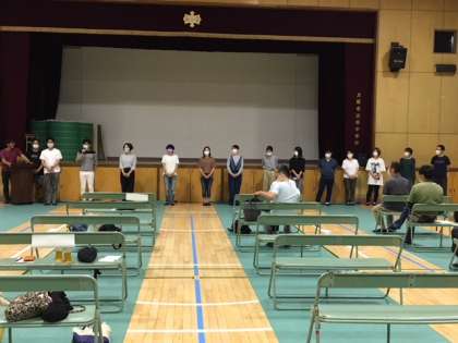 7月3日(金) 西中学校区の学校園(九条幼稚園、九条南小、九条東小、九条北小、西中学校)では、今年度のPTA役員・委員長等が決定し、「五校園連絡協議会」が体育館で行われました。
