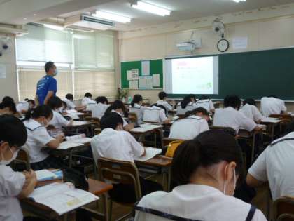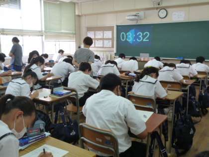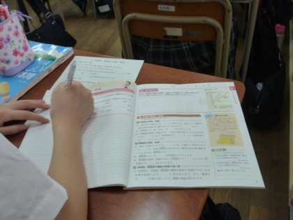 英語は小テストで緊張感がありました。保体は、教科書を見たりしながら、ワークシートに記入しています。