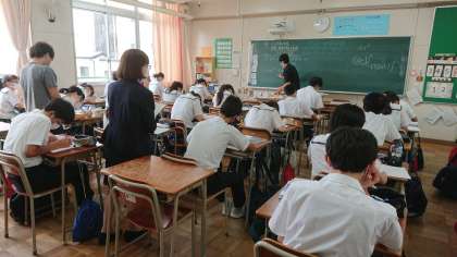 本日5時限目、3年1組において、辻田教諭の数学科「研究授業」が行われました。