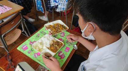 今日は子どもたちお待ちかねのカレーの日です。夏野菜たっぷりです。