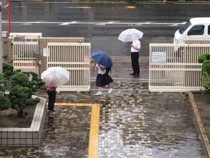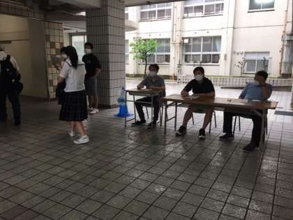 今日も、朝から雨がふり、傘をさして登校しています。玄関ホールでは、健康確認がスムーズに行われています。