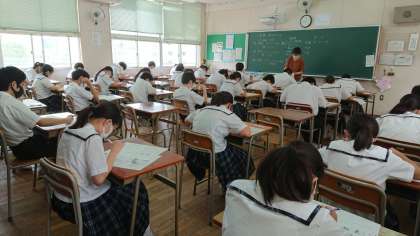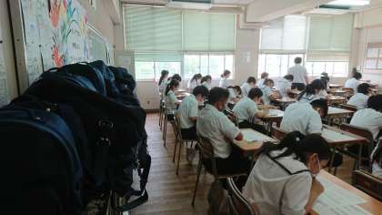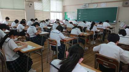 みんな緊張した面持ちでテスト問題に取り組んでいます。