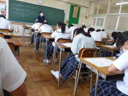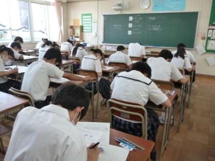 写真は3-1、3-2、3-3で英語のテストの様子です。