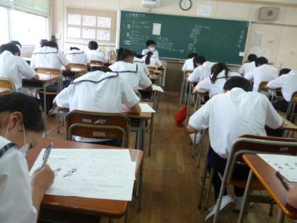 1年生 初めての「リスニング」テストに少し緊張感がありました。