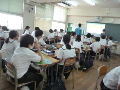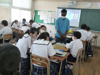 1年1組では、C-netのモリス先生が入って、英語の授業がありました。