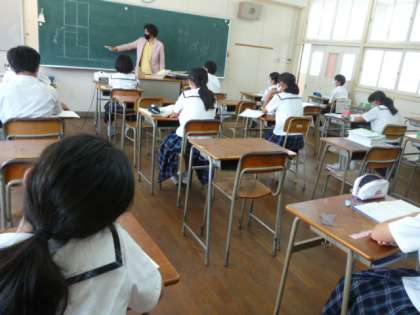 1年1組は、技術・家庭科の分割授業、1年3組は多目的室で美術の授業です。