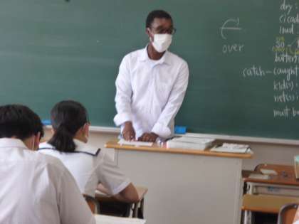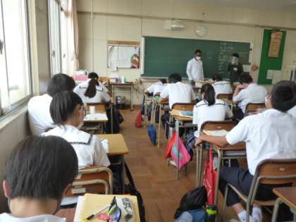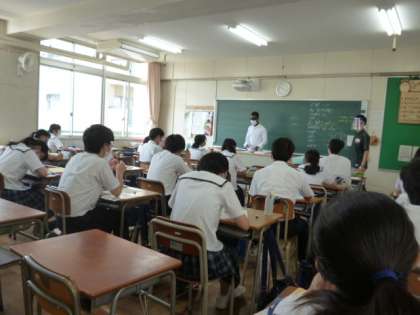 3年2組は、英語の授業で、C-netのモリス先生も参加しています。