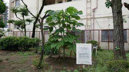 正門の「アオギリ」も人の背の高さよりも大きくなってきました!