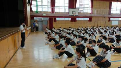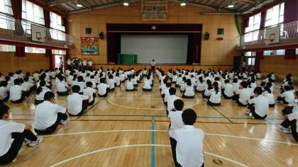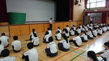 このあと、生徒会役員の皆さんから、先日校長先生が話した「いじめについて考える日」を受けての提案がありますので、しっかりと聞いてください。