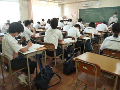 2年1組は、理科の授業、2年2組は国語の授業です。