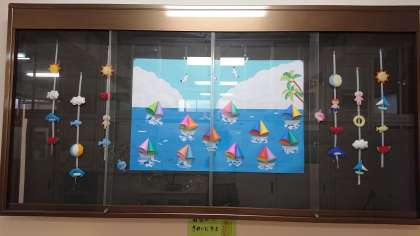家庭科部の皆さんが、校長室前の掲示板の飾りつけをかえてくれました。