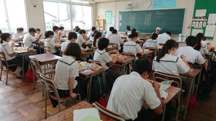 今学期いっぱいは、残念ですが、全員が前を向いて静かに給食をいただきました。