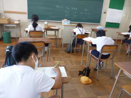 17日(月)から始まった「夏休み小中連携英検講習会」も本日が最終日です。4・5級のコースでは、「模擬テスト」を行いました。