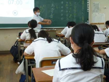 5時限目 1-2は国語の授業、1-3は社会の授業です。