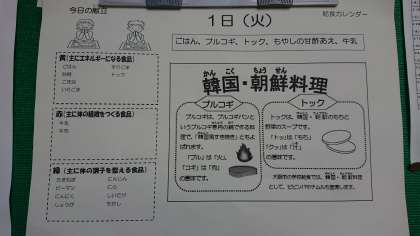 いよいよ9月になりました。9月初日の献立は、プルコギ、トック、もやしの甘酢和え、ごはん、牛乳です。