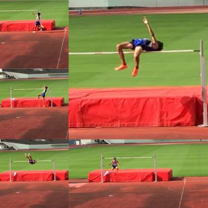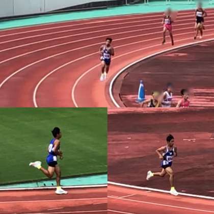 男子走り高跳びの新山は公式練習で1m80mを跳び、記録更新が期待されましたが、試合が始まると助走に迷いが見え、順位は1位ながら、記録は1m78に留まりました。ただ、ベスト記録1m86は現時点で全国ランキング18位なので、30人が出場できる全国大会への出場はほぼ確実です。10月の横浜で最高のパフォーマンスができるよう、今後も練習に励みます。
