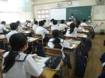 3時限目、1−2は社会、1−1は家庭科の授業です。
