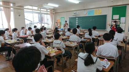 3年生の皆さんも、実力テストを4時間受けた後でも元気です。5時間目に向けてがんばりましょう!「いただきます!」