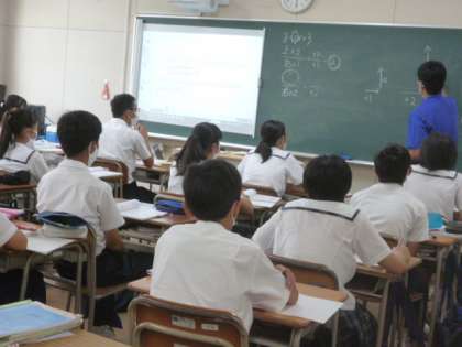 数学では、「1次関数」の切片や傾きをお互いに教えあっていました。