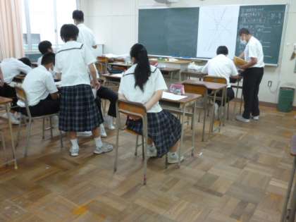 3時限目 2−1は技術、2−2は数学分割授業です。