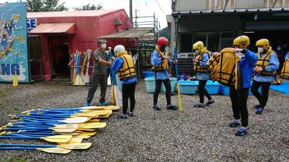 長良川リバーベースに到着しました。ウェットスーツに着替えて、バスでスタート地点に移動します。