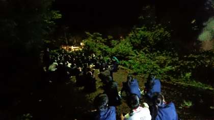 夕食のあとの夜の活動、しおりでは「星空観察」ですが、実は西中学校のみなさんのためだけの「サプライズ花火」です。