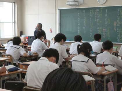 古典の「枕草子」を勉強しています。板書もしっかりノートに書いています。