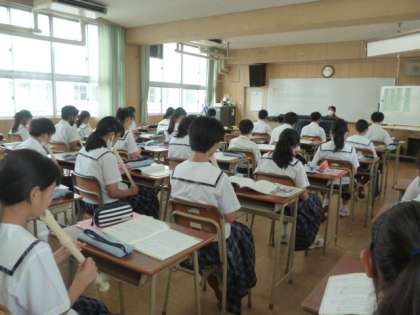 みんなでそろって、アルト笛の練習をしました。ピアノの伴奏に合わせて、みんな一生懸命に吹いていました。
