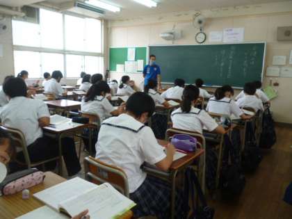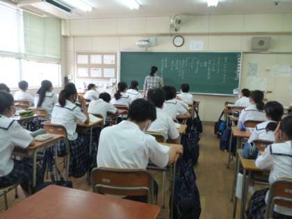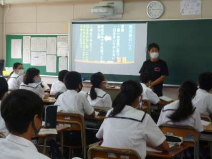 1限目は道徳の授業です。教科書を読み、主人公の気持ちなどを考えました。生徒たちは、いろいろ答えていました。