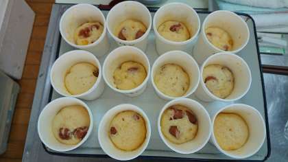 食器を使わず、紙コップを使った「災害時の簡単クッキング」を学び、蒸しパンをつくりました。