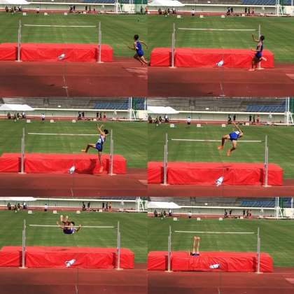まず、走高跳の新山。競技前の公式練習から他を圧倒する跳躍を見せます。185cmを唯一クリアして優勝を決めたあとは、一気にバーを190cmまで上げます。惜しい跳躍もありましたがクリアできず、自己ベストには届きませんでした。それでも全国集計で表彰される10位以内に現時点では入っています。