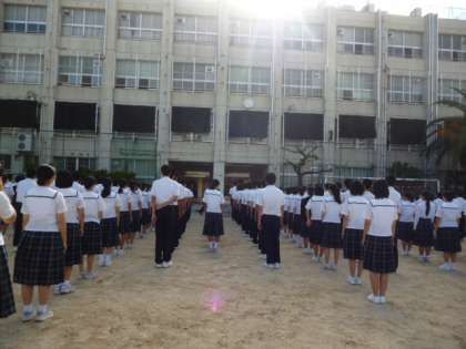 さわやかな秋風の中、2週間ぶりに全校集会が行われました。