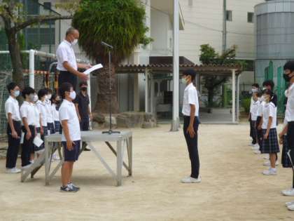 後期の学級委員の認証式も、3年1組の代表で行いました。