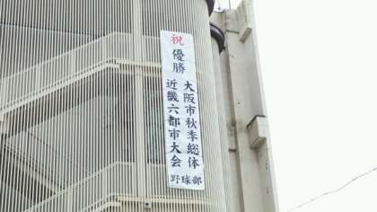 PTA会長らのご厚意で、野球部の大阪市秋季総体と近畿六都市野球大会優勝の垂れ幕を作っていただきました。