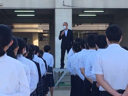 全員で気持ちよい朝の挨拶、校長先生のお話です。