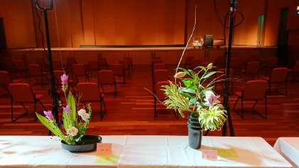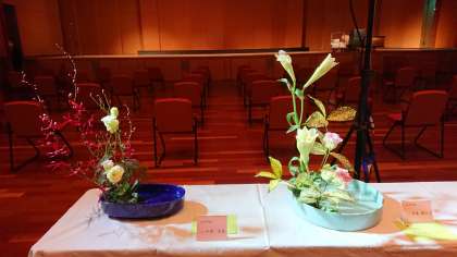 本校、華道部が参加し、鶴見区民センターの大ホールフロアに作品を展示していただきました。