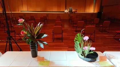 華道部の皆さんが、朝早くから精魂を込めてにお花を活けました。
