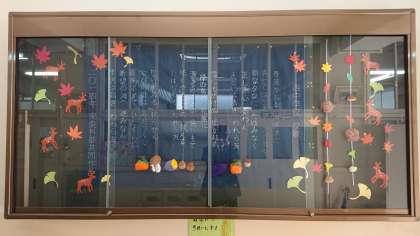 家庭科部の皆さんが、校長室前の掲示板を11月バージョンに模様替えしてくれました。