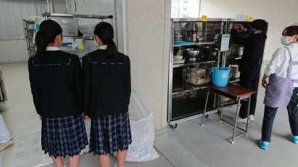 今日は子どもたちの大好きなスパゲッティです。刻み海苔をかけていただきます。