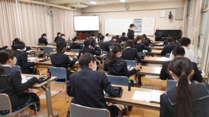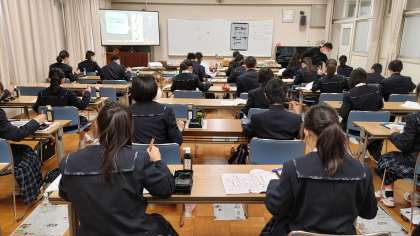 2時限目、1年2組は多目的室で「書道」の授業です。