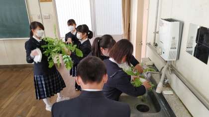収穫した大根を、きれいに洗って、タブレットで撮影し、大きさを計測します。