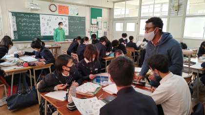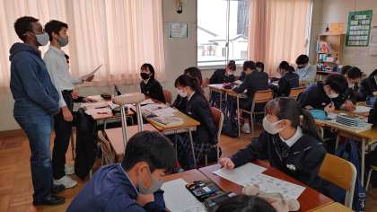 C-NETのモリス先生にもご指導いただいて、班ごとに英語でのQ&Aを発表しています。