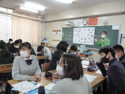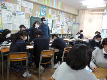 3−3は、6時限目英語の授業で、C-netのモリス先生も参加しています。
