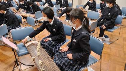本日3時限目の1年3組の音楽は「お琴」の授業です。