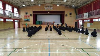 とても寒い朝となりましたが、さすが3年生、時間に遅れずに集合・整列ができています。