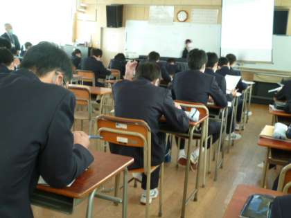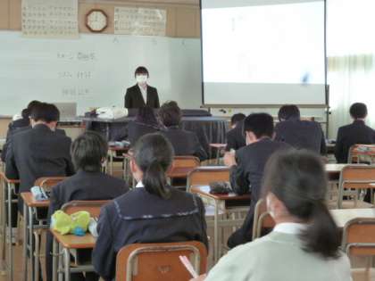 4時限目、2−1の音楽の授業は、大阪教育大学大学院実習生の研究授業が行われました。「マイバラード」の曲のイメージや旋律の感じを考え、発表しました。