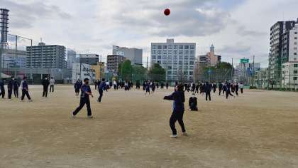 今日は少し寒さも緩み、昨日にもましてたくさんの子どもたちが元気にボール遊びをしています。