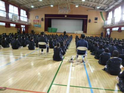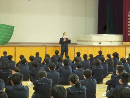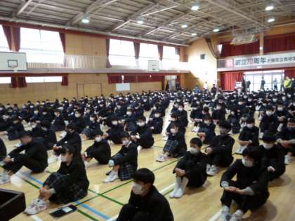 校長先生からは、今般の新型コロナウイルス感染症の拡大が心配される中、「今までとちがう生活だけれども、今だからこそ、できる何かをやってみましょう」とお話がありました。新しい年を迎え、生徒たちも、気を引き締めた様子で、校長先生の講話を聞きました。
