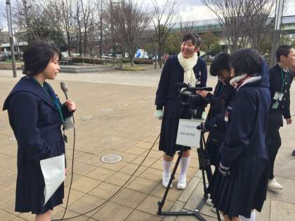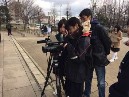 1年生の地域探訪のそばでは、2年生が撮影の練習をしていました。